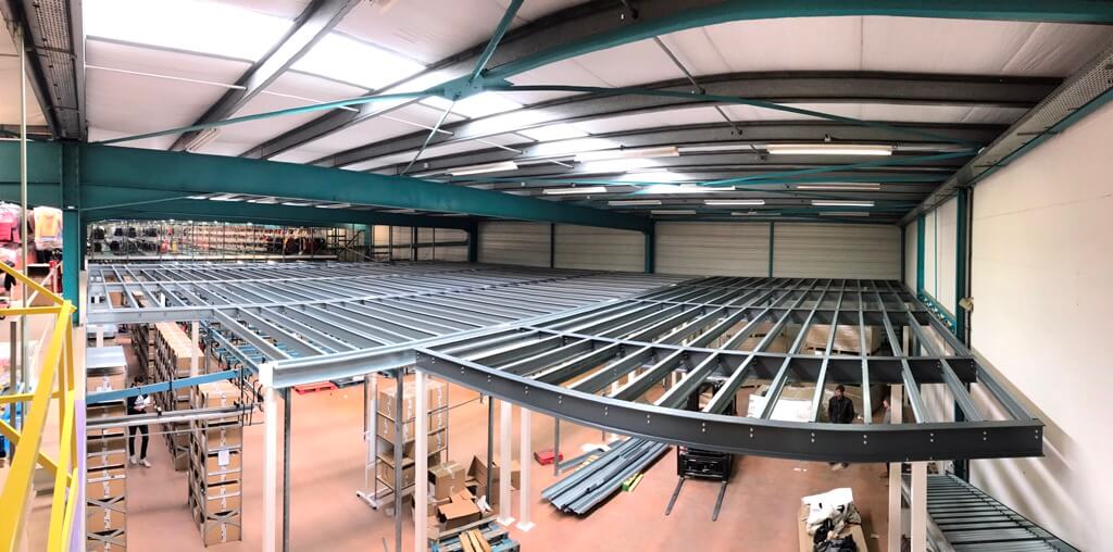 La mezzanine métallique a été installée dans l’entrepôt en activité.