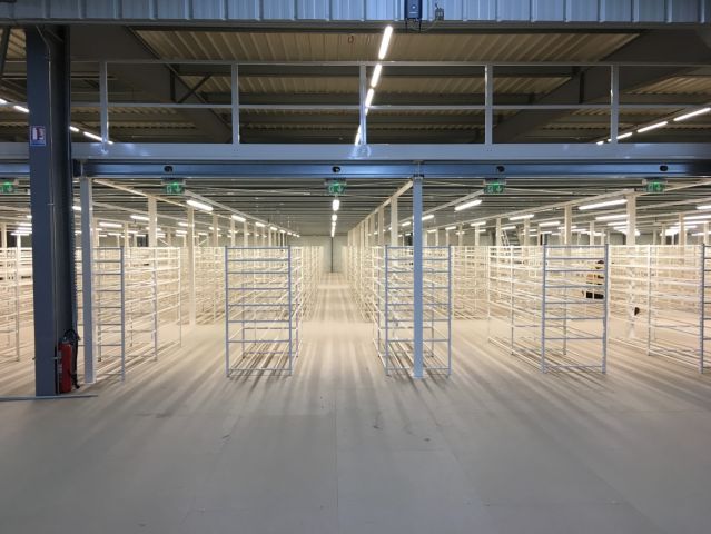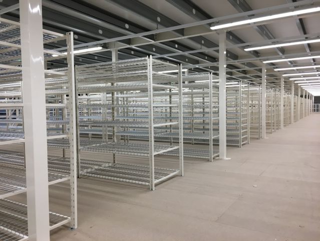 Cette installation représente une surface développée d’environ 4700 m² (y compris le rez-de-chaussée) et reçoit près de 15000 ml de stockage. Des plateaux fil équipent l’ensemble des niveaux de pose de façon à respecter la règlementation incendie. La solution de stockage mezzanine métallique multi-niveaux a permis de tripler la surface exploitable et ainsi utiliser la hauteur perdue du bâtiment.